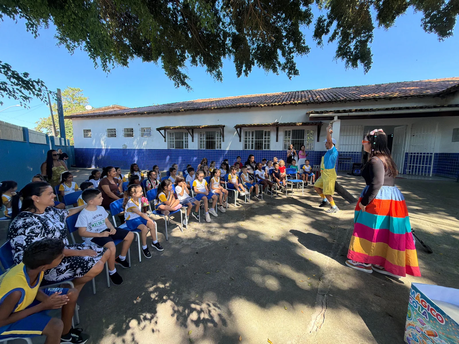 A abertura aconteceu com a apresentação do teatro “O Despertar da Magia”, onde personagens lúdicos convidaram nossos estudantes dos 1º e 2º anos do Ensino Fundamental a embarcarem em uma jornada cheia de imaginação, descobertas e histórias. Entre risadas, música e participação das crianças, o “Livro Mágico” foi despertado, simbolizando o início de um caminho de aprendizagem e sonhos por meio da leitura.